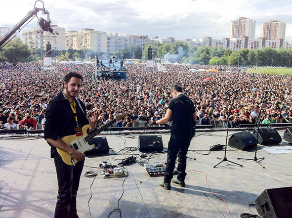 ![]() Discography (Lion Music) ![]() Parallel Worlds / My Secret Diary / When Reality is Nothing / Personalities ![]() with Moonlight Comedy : The Life Inside / Dorothy ![]() No Gravity : Worlds in Collission First of all, hello to all the readers. Before "Personalities", in the last ten years, I released nine worldwide distribution works with the Finnish Lion Music, solo albums, Progressive Metal projects and works done with my past band, Moonlight Comedy. In the meantime I have taught, and still teach music, collaborate with some journal and web magazine to publish musical articles and tutorial videos. My musical influences are J. Satriani, John Petrucci and Dream Theater, Greg Howe, Gutrie Govan and many others. Do you think your solo albums helped you get your current gig . Last tour, as well as the one that is beginning, sees me involved in a very important Italian musical project, the "Rezophonic"; founded by Mario Riso (one of the most important Italian drummers) involve a lot of international and Italian big artists, people like Cristina Scabbia of Lacuna Coil. My personal discography point me out to Mario Riso, so I was involved in this reality. Please explain to us non Italians who your boss is and how famous and popular he really is in Italy. As I told you, I'm a member of Mario Riso's Rezophonic. Rezophonic are a musical/humanitarian project, musical because we play music, humanitarian because part of the tour and albums gains flow into a gathering of funds to bring water in Africa. I can tell you that nowadays Rezophonic have contributed to build 158 water well, 3 school and 20 cisterns. Please tell me what equipment you use on the road and in the studio. Not for be a “good” endorser, but in studio and on the road I use only the equipment I proudly sponsor: ESP Guitars, Blackstar Amps, InTune Guitar Pics and FT Elettonica (finest handmade pedals). Are you able to make a living out of music alone? Yes, uniting all my activities. As I told you before, in addition to have a life on stage, I'm the artistic director of a big music centre "Industrie Sonore" (www.industriesonore.it), with school, practice rooms, recording studio. Do you or do you plan to play your solo album material live Unfortunately, "Personalities" remains a studio album: this release has coincided with my entry in Rezophonic, with which I have been on road for a year, so I put aside my solo career. With the next album, I'll try to play live the more possible also proposing "Personalities". ![]() what about your previous bands Moonlight Comedy and No Gravity? "No Gravity" was born exclusively as a studio project. Moonlight Comedy were my first real band, still I carry them in my heart. Together we released two works (The Life Inside - 2004 and Dorothy - 2007) albums that got great evaluations by the critics, so we could play many lives. The band split up five years ago for several personal and professional reasons. Please tell me about growing up in a small city and the hardships of finding other people to play with. The real question isn't to find good instrumentalists, by now they are everywhere, but find the right person with the right head, really hard to find. For this reason, except for the Moonlight Comedy period, my music partners are Mario Riso, who lives 600km from me, Dino Fiorenza (one of the best rock bass player here in Italy) 500 km, John Macaluso (ex Yngwie Malmsteen and James Labrie drummer). Nowadays I think I have found two great musicians with the right head in my neighborhood, and it's no coincidence that both are teaching in my school: Gianfranco De Lisi (bass) and Marco Aiello (drummer already present in other works). What was your goal with making your last album? Well, I think to have done a variegated work, even if remaining rock; from the many reviews, the email I receive from everywhere in the world, I think to have done a good work. How do you feel about the guitar oriented music scene of today? Nowadays it's possible to listen to anything, from kind of music to absurd guitar heroes. You can find everything you need, no doubt, some instrument exponents have increased so much the technical level. Where do you see yourself in 5-10 years? I wish to grow beyond as artist and try to obtain well defined prefixed targets. I will do it... Anyway I still have a guitar in my hands. In what way do you think your last solo album is different from all the other instrumental guitar albums that are out there? Certainly "Personalities" is my wisest album, with a lot of good ideas and a great interpretation. I think to have reached a well defined sound, result of my own music evolution. The work was released in 2013 by Lion Music in 27 nations, really a satisfaction to feel fans' impressions all over the world. How much time to you spend practicing and rehearsing music per day or week. Today it's not simple for me to plan per day or week the time I dedicate to the music, because the commitments are so many and more than be a musician I'm father of two children too. Anyway, I always try to dedicate at least three hour per day for my personal things: study, compose, train. I'm not the kind of person who spend a lot of time in the practice room: with a view to a live, I prefer that every musician works his scores, then to organize a show by few rehearsals. ![]() Well I think the music will survive, but I don't know if the professionals too. Personally I don't share this conception: if you want I work for you, well I demand my cachet, both for a recording and a live. But for a guest on a work, for example, where you can stick down only a few scores, well... I'm happy to do it free. What are your future plans? In a little while we'll start with the Rezophonic tour, I'm curating the "Industrie Sonore" studios and think to begin writing the new material for a new solo album. Now I want to say thanks and hello to all of you. Thanks to have given me this space and thanks to all the readers have spent the